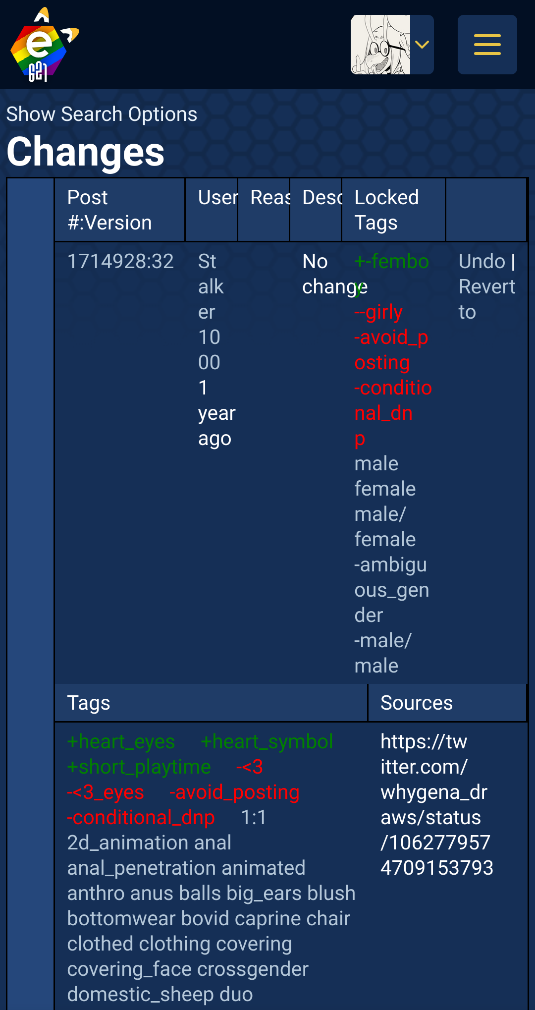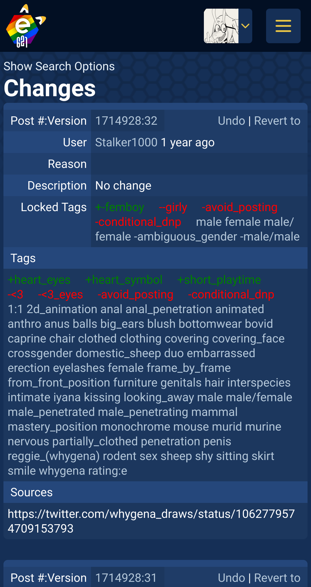 So for instance, while ~miso_souperstar ~r-mk (~butt_focus ~areola) will show every post that has any combination of those tags and artists, ~miso_souperstar ~r-mk -(~ butt_focus ~areola) will show all posts by the r-mk or miso without those tags. Yet another way to avoid posts you donβt want to see. Almost like the people who work on this site put genuine effort into QoL. Shocker. Love you admins and developers! <3