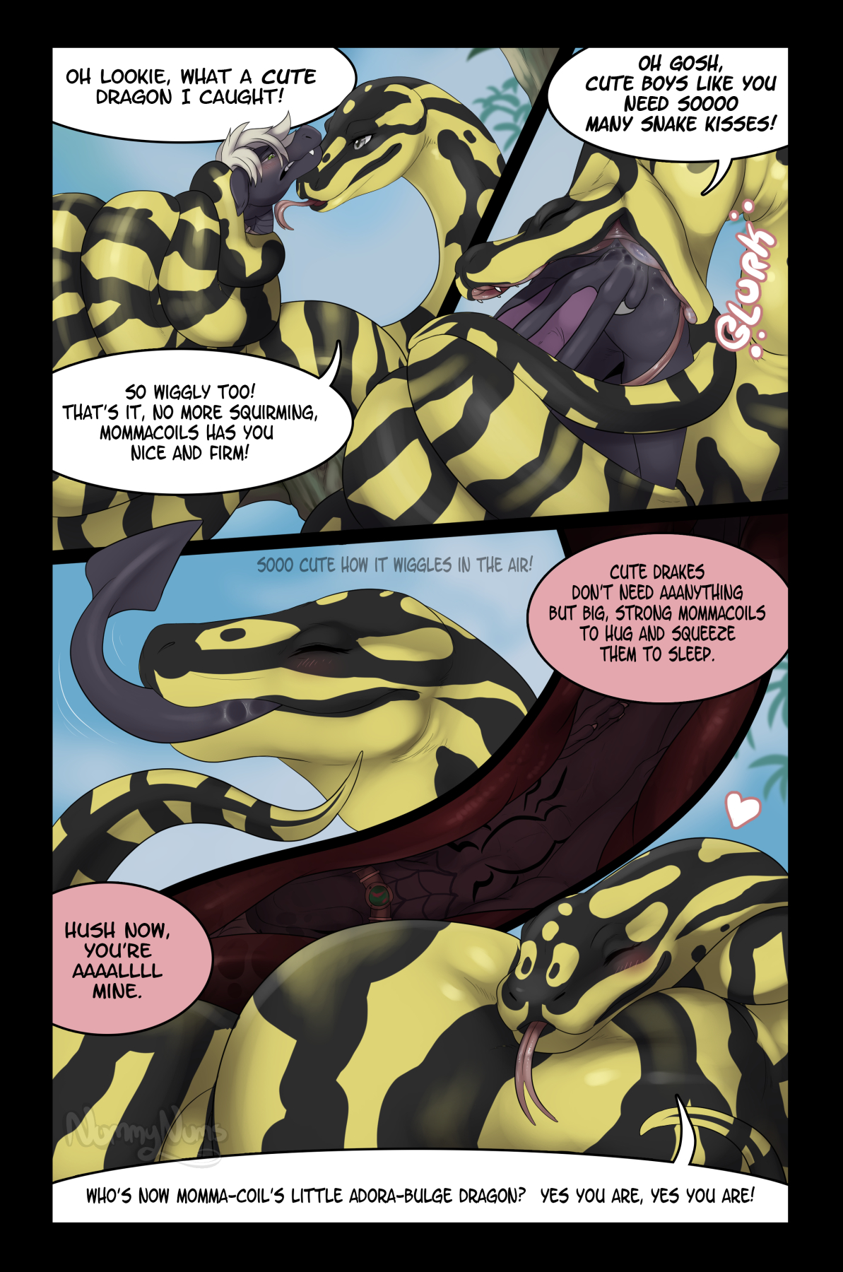Looks like a big, jungle mamma has found a cute lil dragon to keep aaaall for herself! She simply can't wait to give him really, REALLY good hugs with her coils! Tucked in nice and tight! ♥