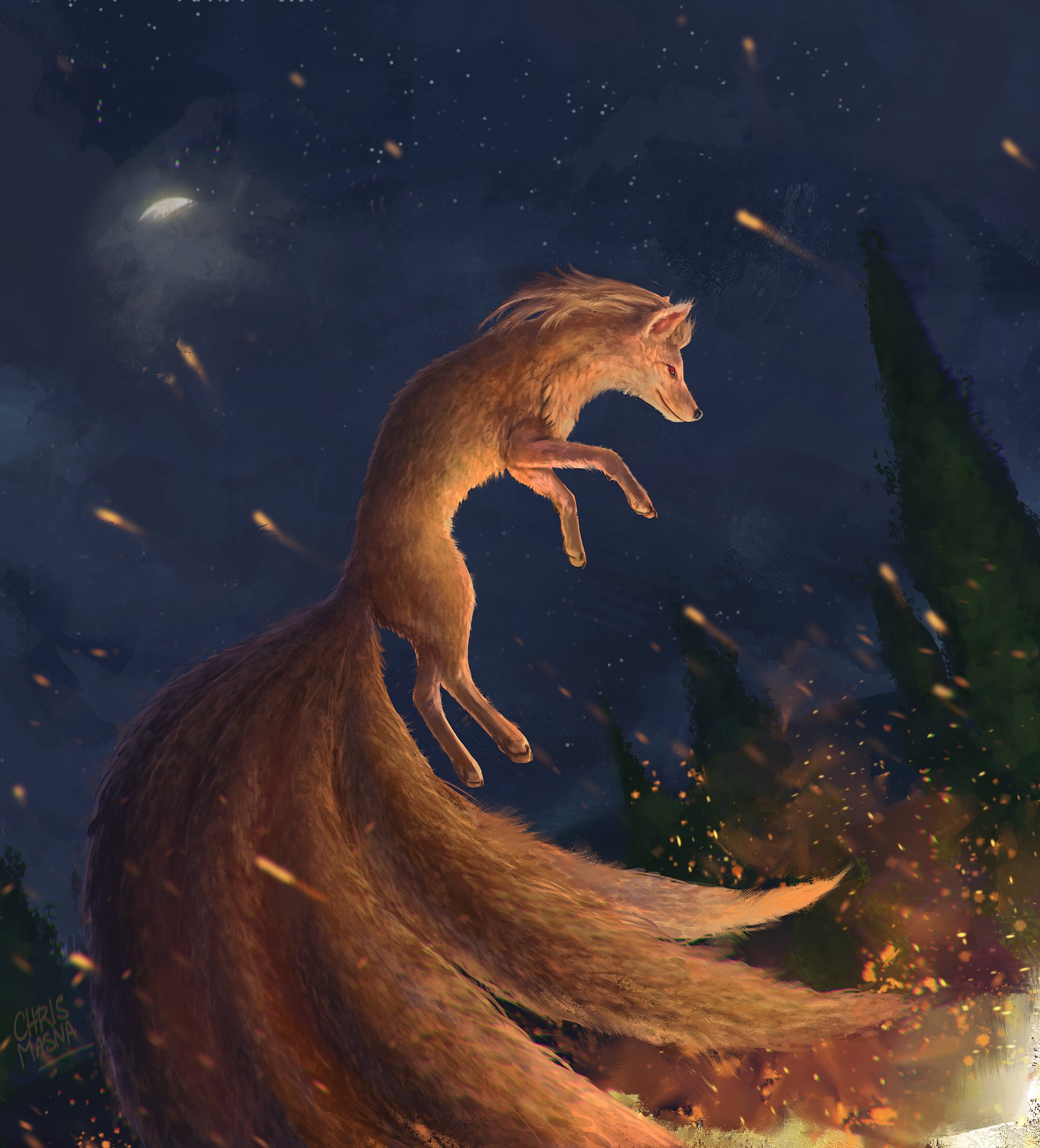 New realistic Pokémon piece! This time I was requested a Ninetales (with a hint to van Gogh's "Starry Night" as background). I enjoy painting Gen I Pokémon so much.