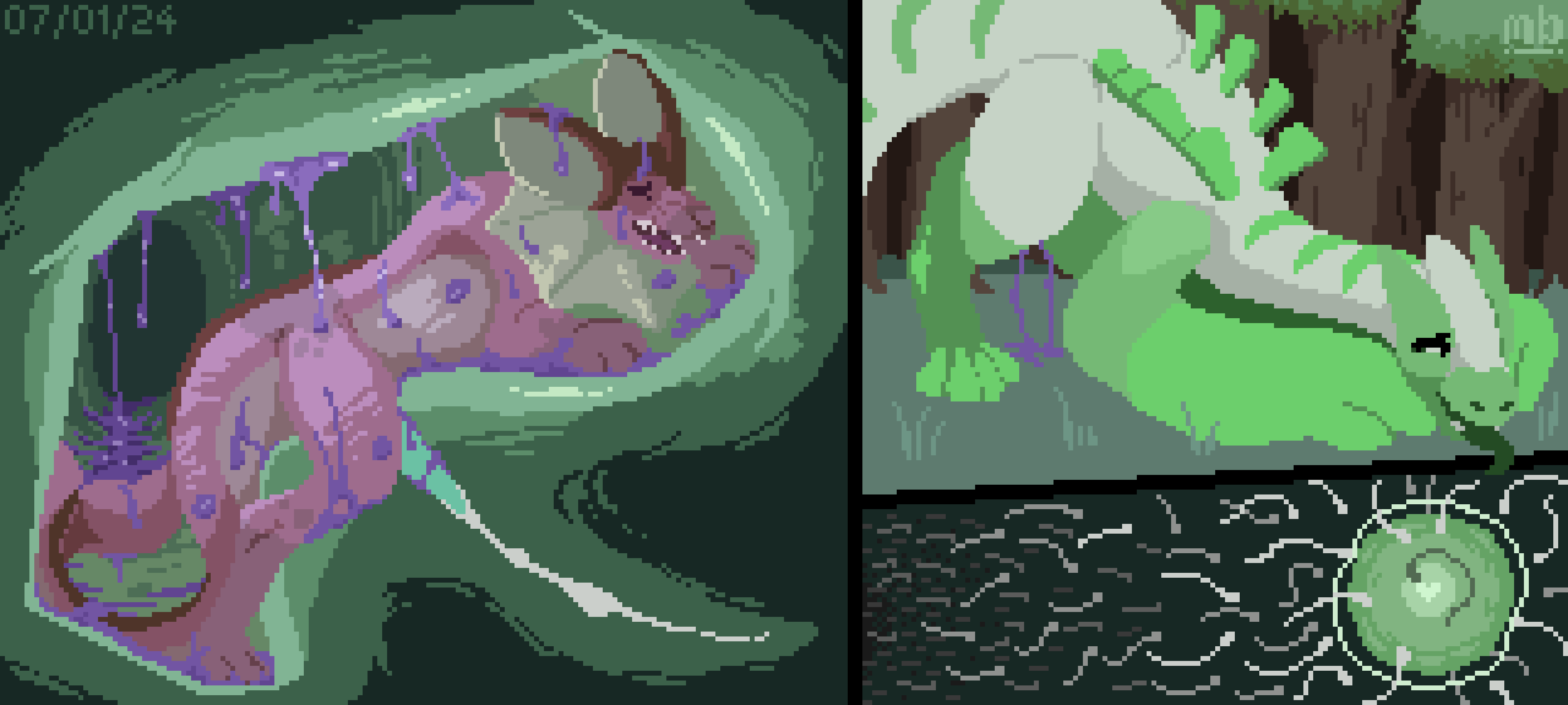 After stumbling upon a sleeping lugia, a perverted vaporeon crawls inside his cunt with the intention of making some new demigods. Little did he know that he'd wake up and be just as into it :>