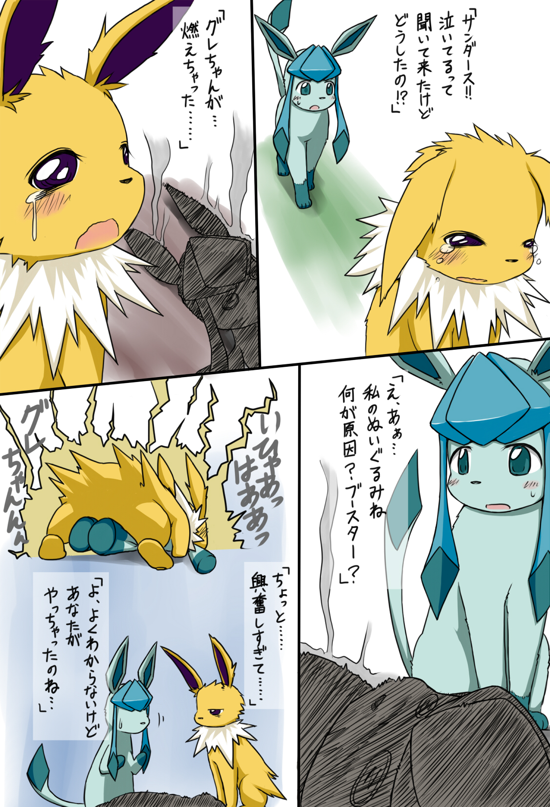 "Jolteon!! I came because I heard you were crying. What's wrong?!"